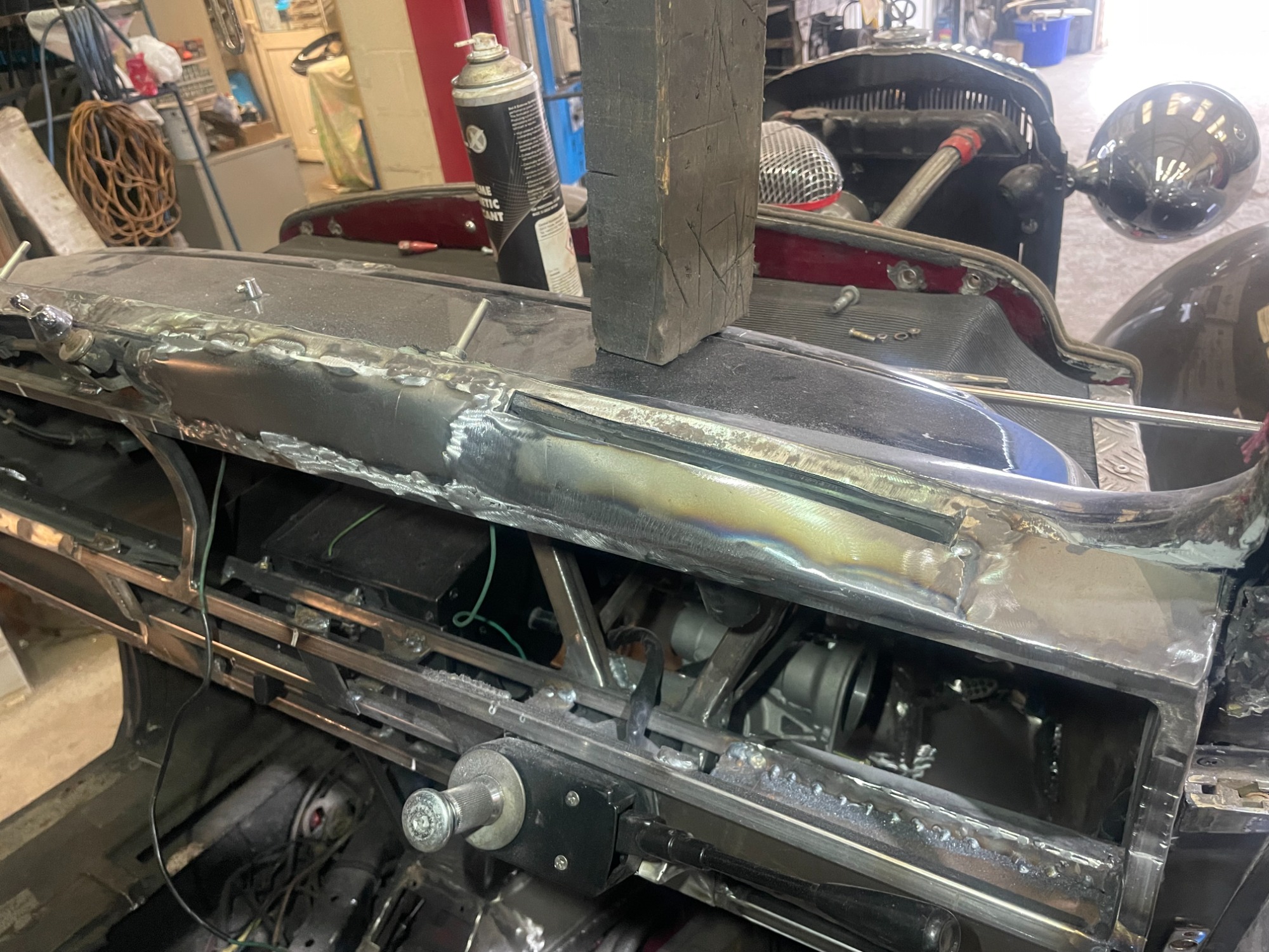 Customer asked us to build the chassis on the front of his Ford Pop hot rod to accomodate a new radiator