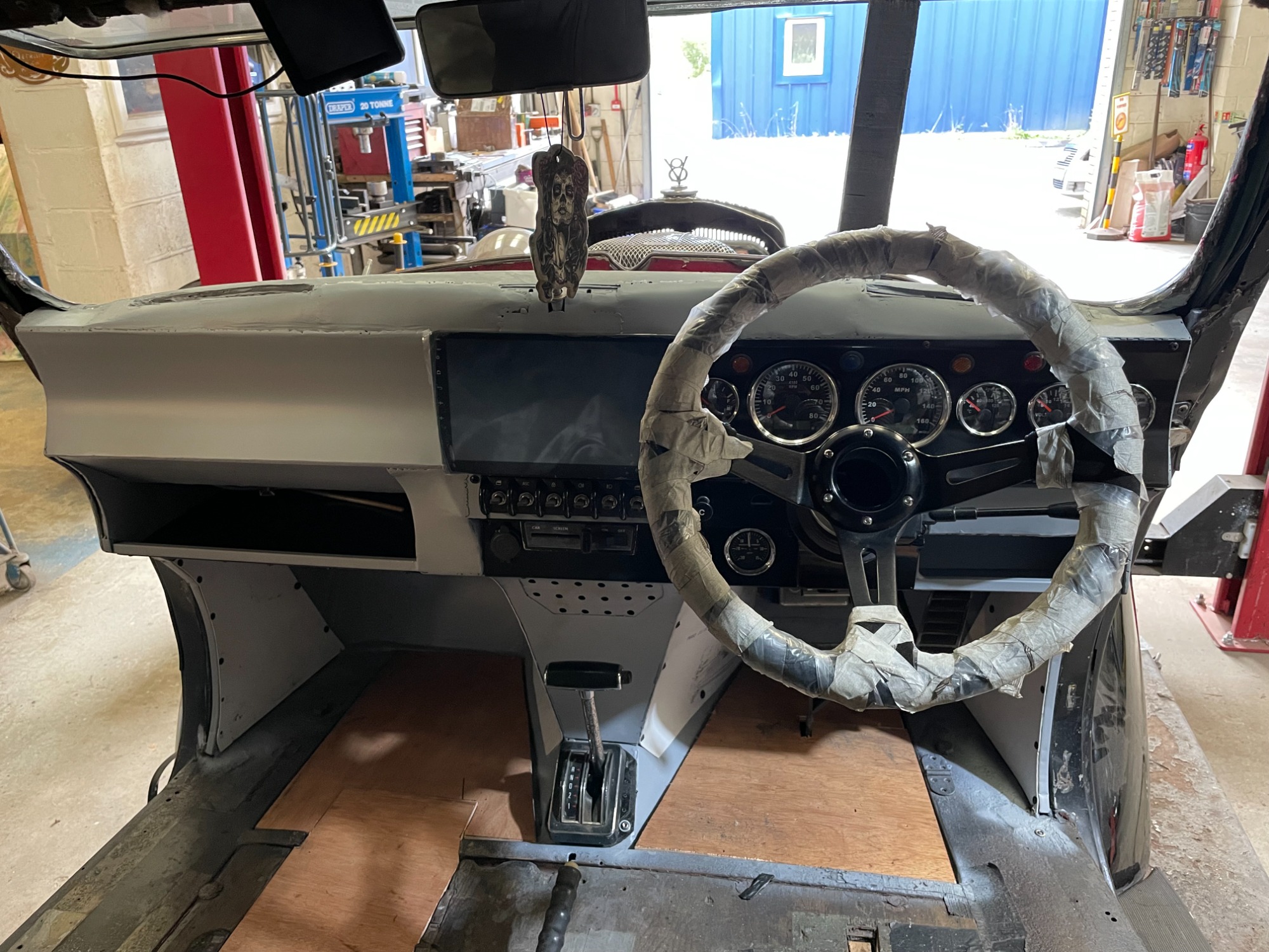 The customer supplied us with the steering column, heater controls (from a Mini), touch screen, dials and switches.